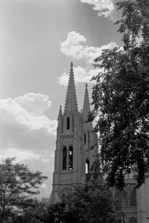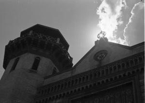 An early experiment with dramatic cloud highlights. The sun shines through the center of the Star of David atop an old Southern Baptist church converted to use as a Synagogue. Or perhaps it was the other way around, its been so long I dont remember. |