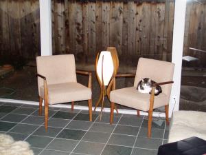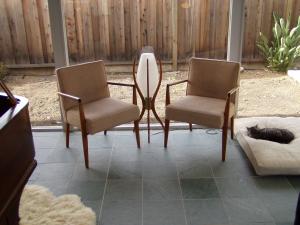 Continuing North again, just passing the right side of the piano, you'll encounter these two chairs from the local consignment store and a period lamp from ebay which serve mostly to block the view of the unfinished landscaping on the north side of the Living Room. |