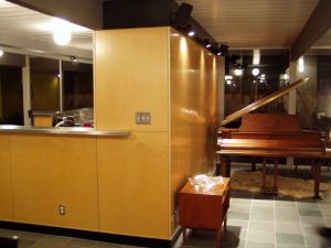 Shift a little to your right and then turn counter-clockwise to face West and you'll see the piano against the West wall of the Living Room. You can just make out the pass-through to the Kitchen on the far right. |