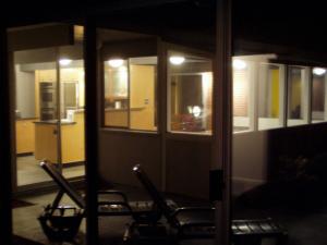 Wait for nightfall, then continue down the Hall past the Bathroom to the Master Bedroom and then look back towards the North East through the window-wall and you'll have this view of the common areas of the house. |